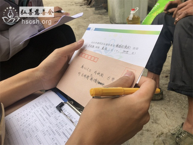 救济金:500元;(另有爱心人士“肖某、吕某”委托义工们为送去善款:400元)