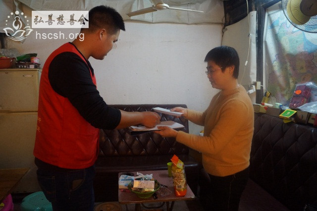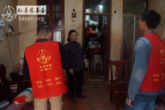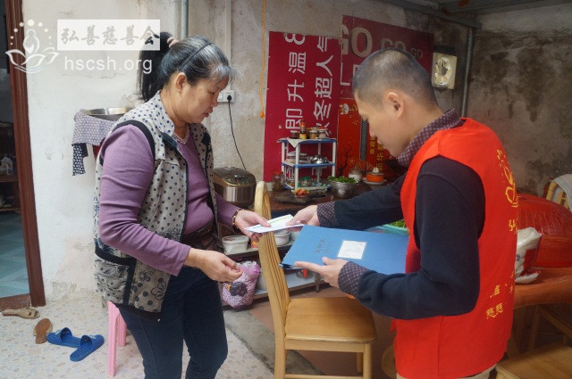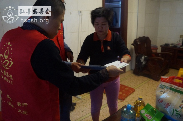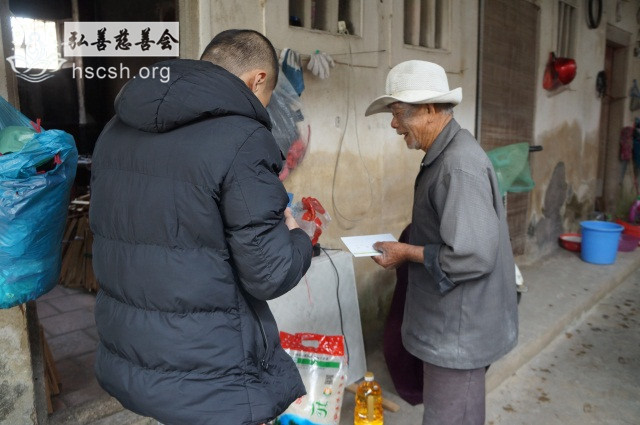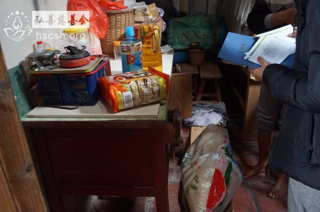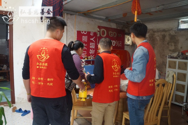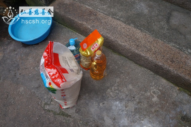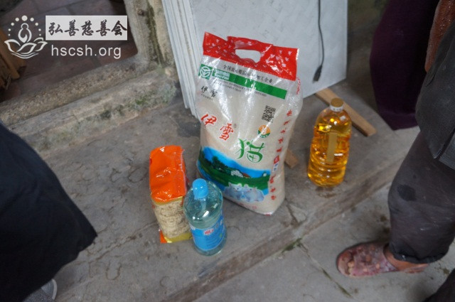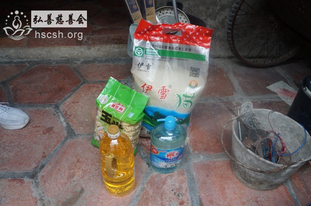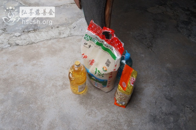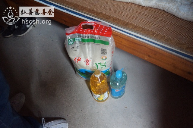 慰问物资:10kg贵夫人大米1袋、1.8l金龙鱼玉米胚芽油1瓶、洗洁精1瓶、腌菜酱1份