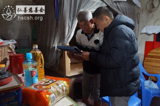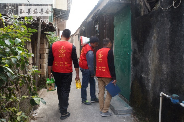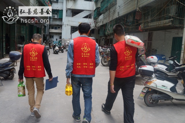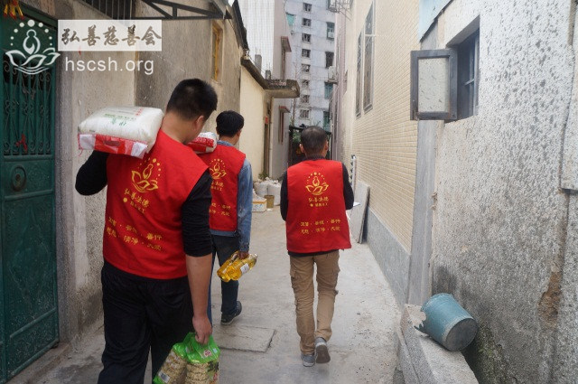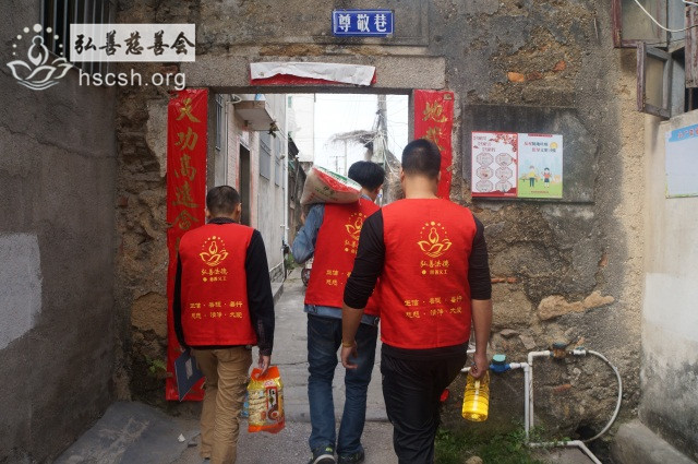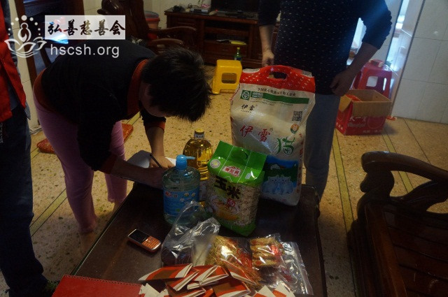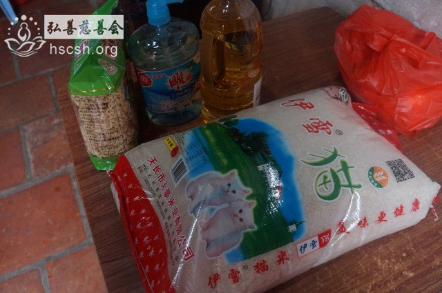 慰问物资:10kg贵夫人大米1袋、1.8l金龙鱼玉米胚芽油1瓶、洗洁精1瓶