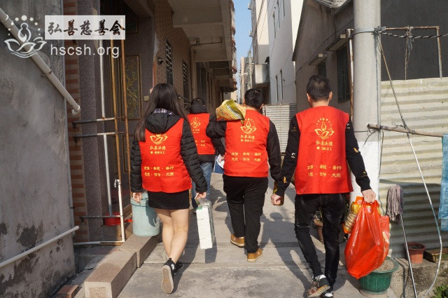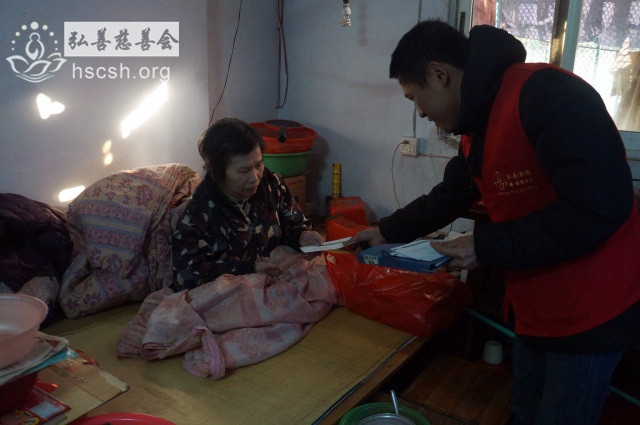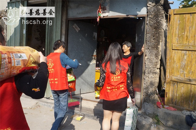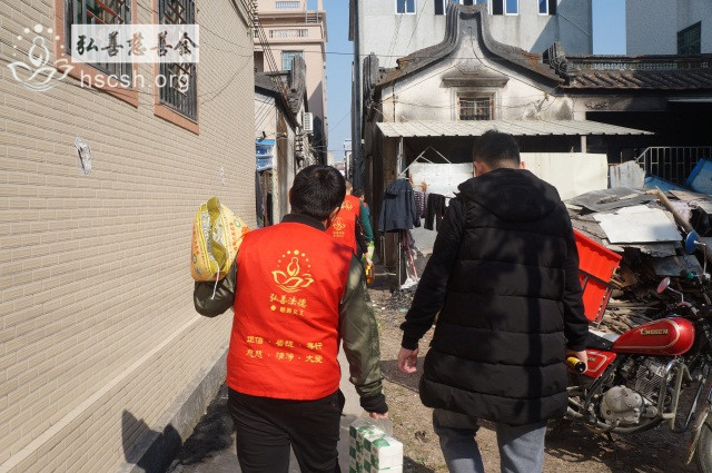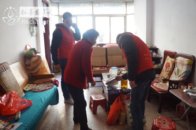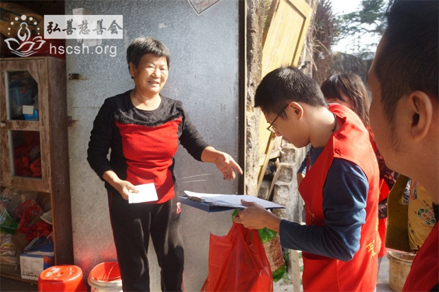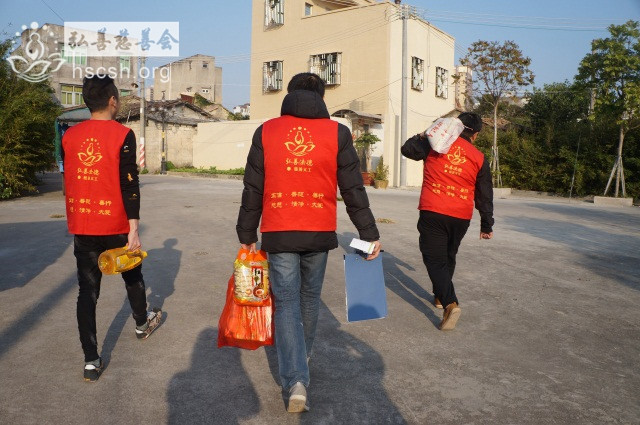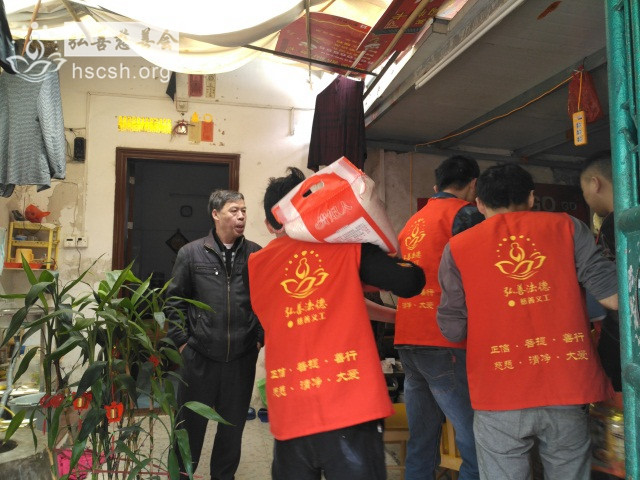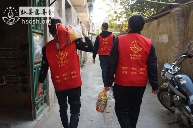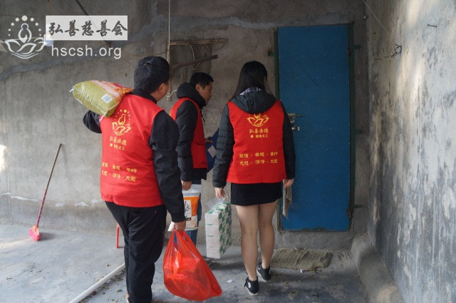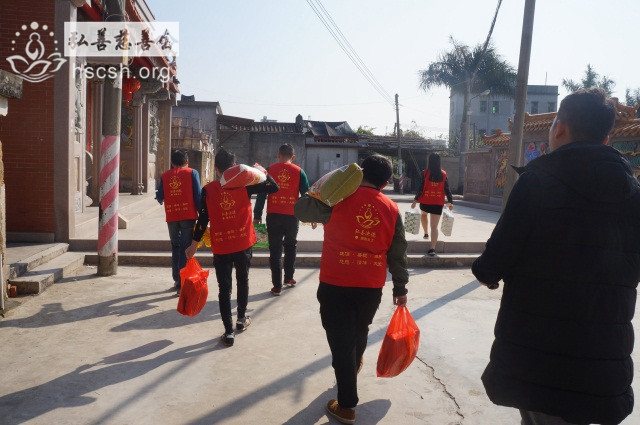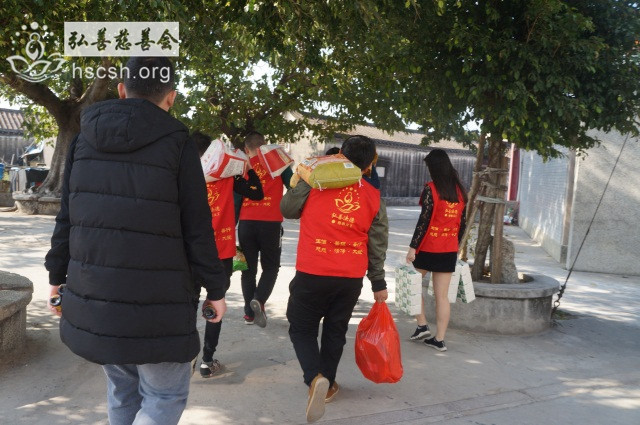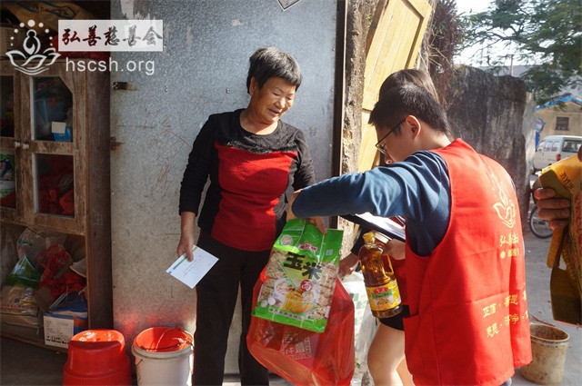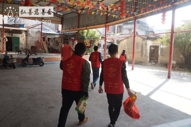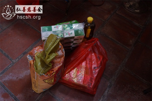 慰问物资:10kg贵夫人大米1袋、1.8l鲁花菜籽油1瓶、红萝卜面1袋、面巾纸1提、酱油1瓶、新年礼包1份