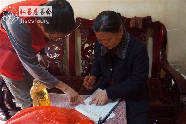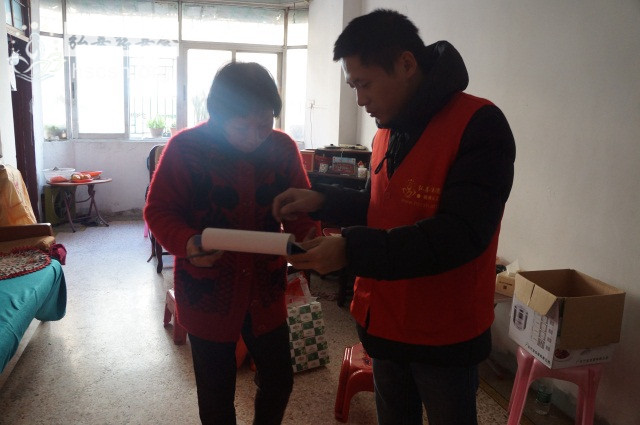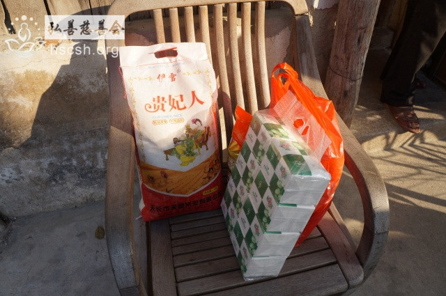 慰问物资:10kg卧龙谷大米1袋、1.8l鲁花菜籽油1瓶、红萝卜面1袋、面巾纸1提、酱油1瓶、新年礼包1份