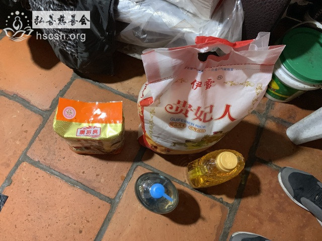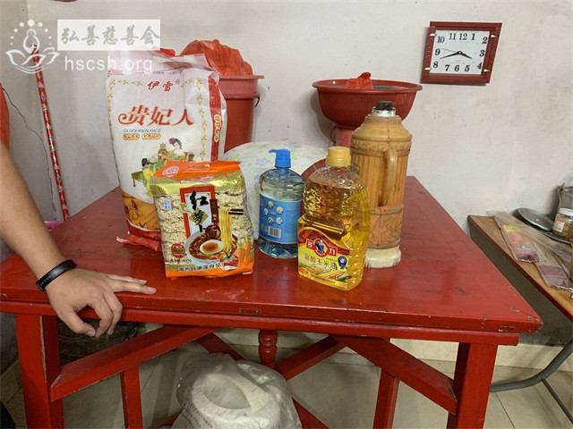 慰问物资:10kg贵夫人大米1袋、1.8l多力玉米油1瓶、红萝卜面1袋、洗洁精1支