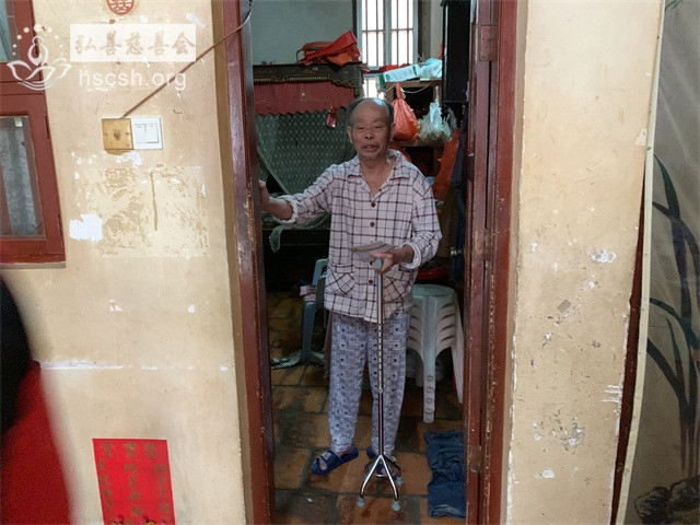 到达时,老人在晾衣服要回去,双目失明的他只能靠双手去摸索