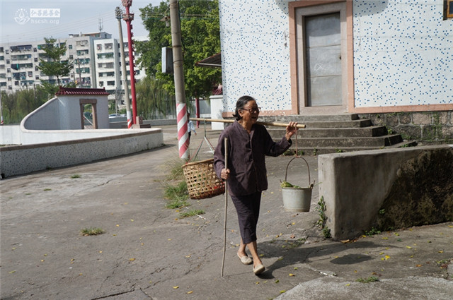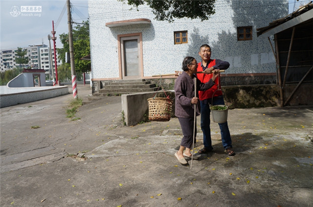 义工们到访时,老人刚从菜市场卖菜回来(菜是老人的女儿种的)