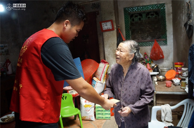 义工将救助金送到老人家手上