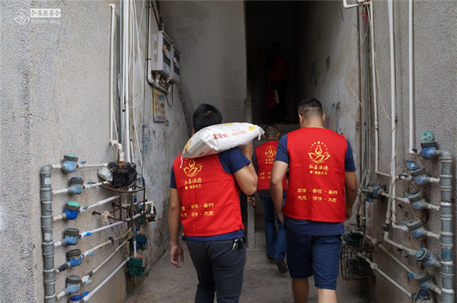 义工将慰问物资送到老人家中